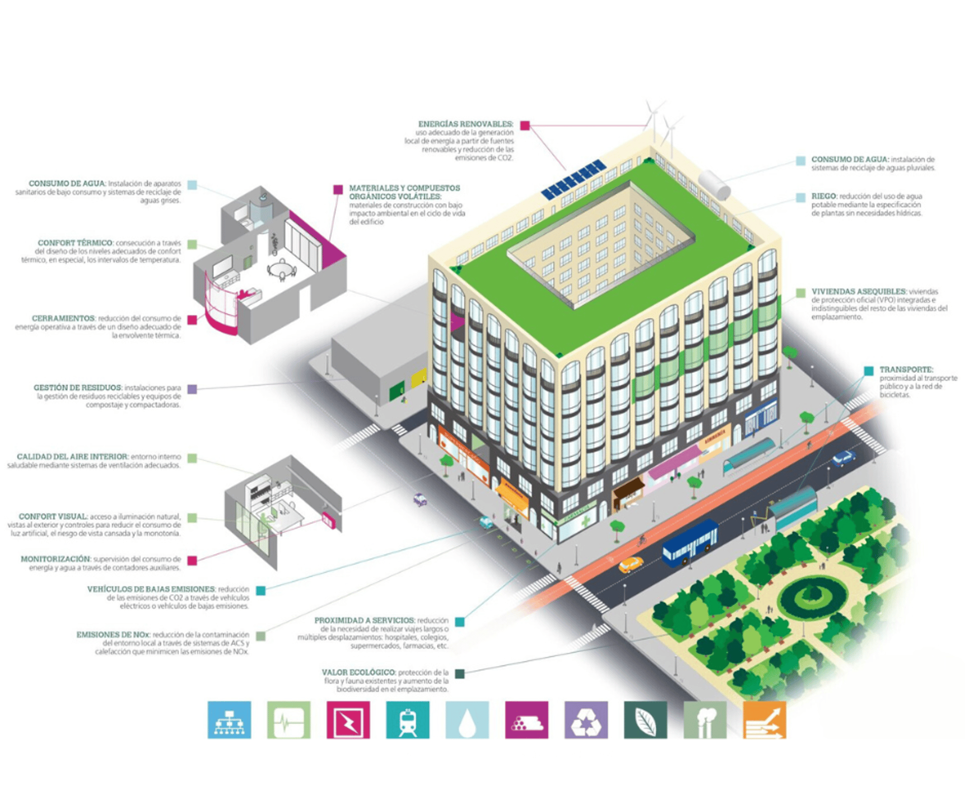 Der Komplex ist nach BREEAM-Nachhaltigkeitskriterien zertifiziert und engagiert sich für die Umwelt.